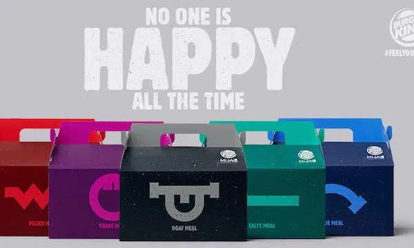 Burger King U.S. is collaborating with Mental Health America to launch its new “Real Meal” boxes in a bid to raise mental health issues. The new boxes, which seem to be a jab at McDonald’s signature Happy Meals, feature a variety of different moods including the Pissed Meal, Blue Meal, Salty Meal, YAAAS Meal and DGAF Meal. Read more here.