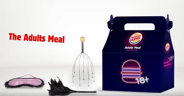 Burger King is offering a special “adults meal” consisting of two Whoppers, two orders of french fries, two beers, and one romantic adult toy.