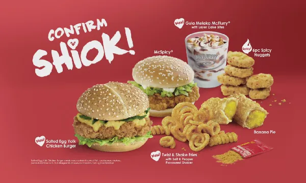 According to McDonald’s Singapore, it's Confirm Shiok range includes a chicken burger featuring a salted egg yolk flavoured sauce, as well as Twist & Shake fries with salt and pepper crab flavoured shaker.