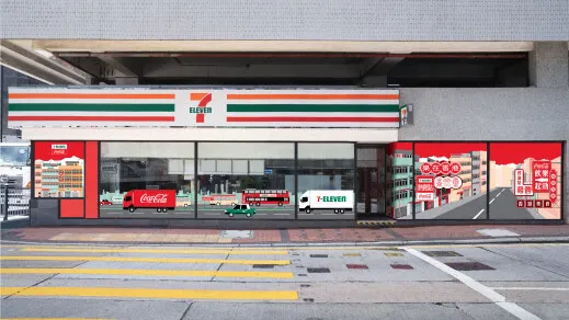 With Turn Up the City's Rhythm with Coca-Cola as its theme, the outlet incorporates a variety of Hong Kong-inspired elements. The storefront depicts the market’s streetscape against Coca-Cola’s red backdrop.