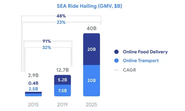 Combining it with food delivery, the consolidated sector’s 2025 potential exceeds US$40 billion, up from US$29 billion predicted previously. This means that food delivery is projected to be as large as the ride-hailing sector by that year.