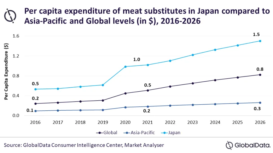 The Japanese meat substitutes market is set to register a compound annual growth rate (CAGR) of 5% to reach JPY36.3b ($373.5m) by 2026, data and analytics firm GlobalData said.