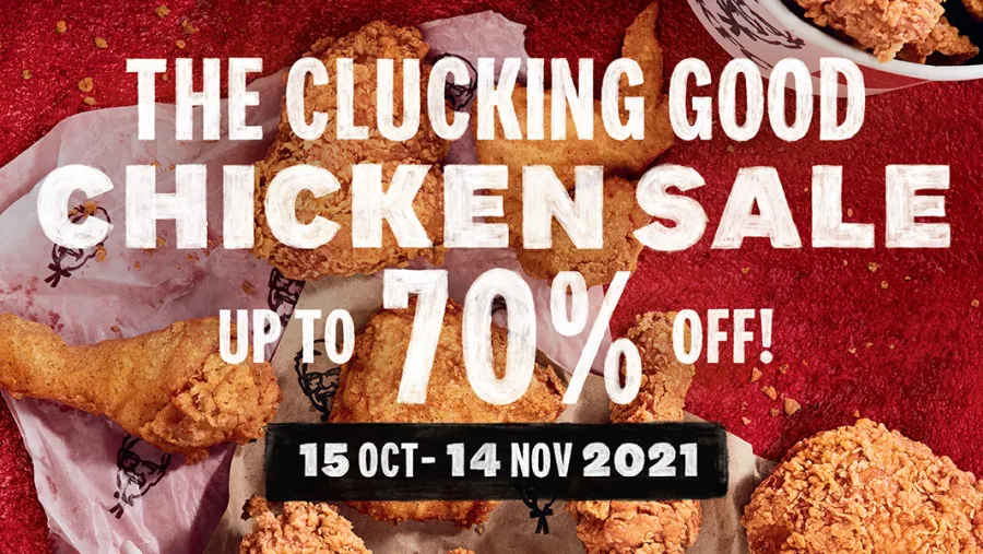 KFC is offering up to 70% discounts via the The Clucking Good Chicken Sale.